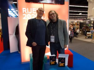 Naša promocija je krenula nešto iza podne, a bilo nas je ukupno, s mojim prevoditeljem gospodinom Borivojem Radakovićem i samnom, svega osmero. Uz nas dvojicu u publici su bili: mladi gazda V.B.Z-a Mladen Zatezalo, urednica V.B.Z.-a Sandra Ukalović, Kašmir Huseinović, nešto kratko na početku Mihaela Majcan Marinić i dvije meni nepoznate mlade dame iz Rijeke. Pročitao sam priču „Maksimir gorki“ o velikom hrvatskom nogometnom treneru Branku Zebecu na hrvatskom, a Borivoj Radaković je pročitao dio svoga prijevoda toga teksta u vlastitom engleskom prijevodu