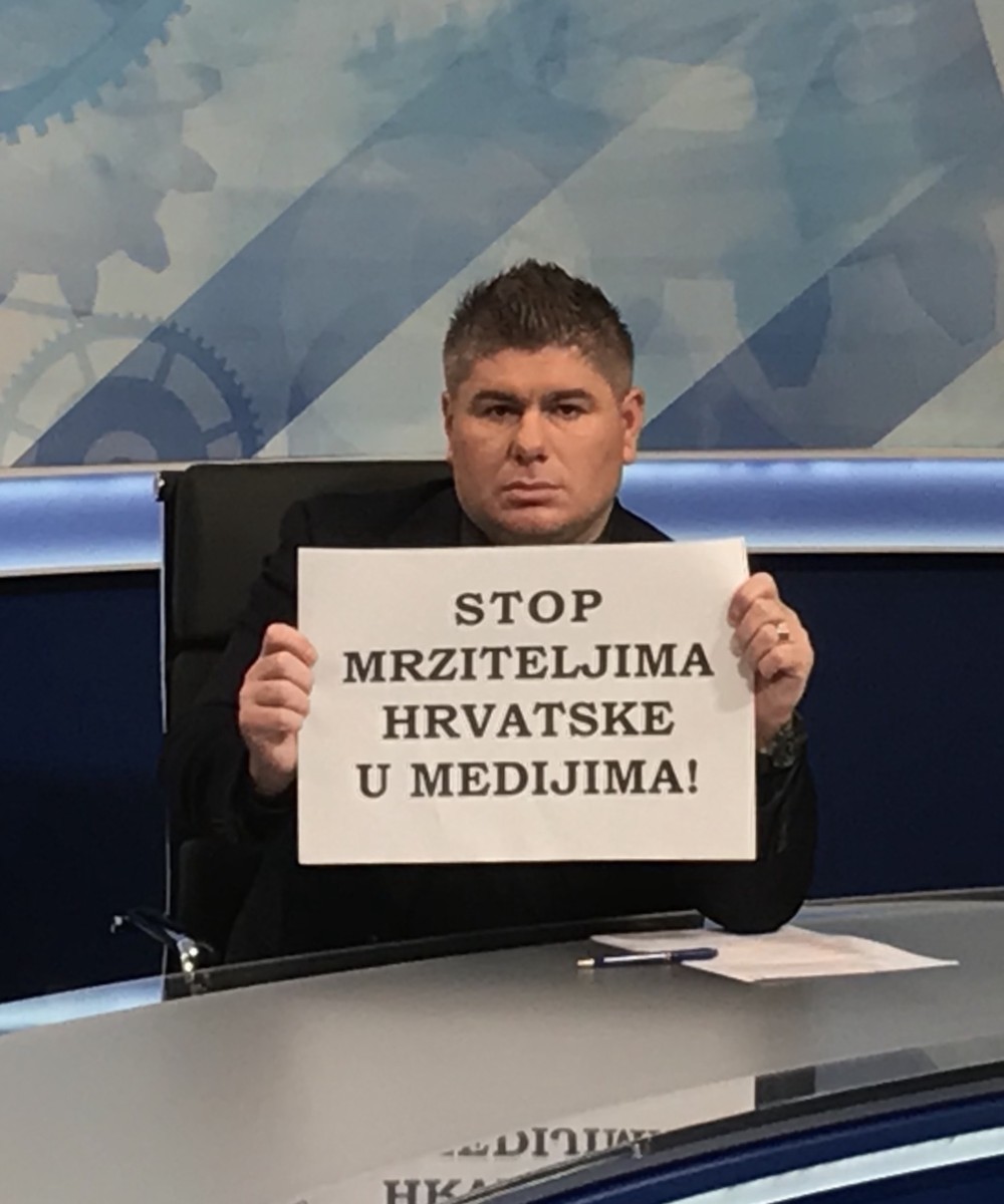 “Za kraj jedna poruka likovima koji nam dociraju za naše novce i prodaju pamet zahvaljujući RTV pristojbi koju svi moramo plaćati,” rekao je voditelj i nastavio: “Vrijeme je da kažemo STOP MRZITELJIMA HRVATSKE U MEDIJIMA! Svejedno je, jesu li rođeni u našoj zemlji ili nisu – al’ svima im se sviđaju hrvatske kune! Idite na N1 pa tamo radite protiv Hrvatske, kad već niste frajeri i niste sposobni u vlastitoj produkciji opstati na nekoj od lokalnih televizija. Na tržištu treba zaraditi za svoj kruh, a vi to ne znate jer ste baš kao u vašoj propaloj Jugoslaviji, naučeni raditi malo – za veliki novac.” T
