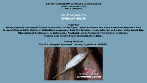U utorak 21. veljače, naredne 2023., od 20 sati, u Maloj dvorani KD Vatroslava Lisinskog održat će se Festival šansone „Zvonimir Golob“. Nastupaju brojna eminentna imena šansonjerske i kantautorske provijencije: Hrvoje Hegedušić, Miro Ungar, Zdenka Kovačićek, Alka Vuica, Mladen Burnać, Toni Janković…