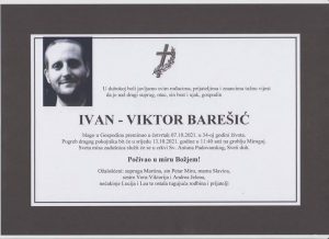 Sahrana Ivana Viktora Barešića bit će na Mirogoju u srijedu 13. listopada u 11 i 45.