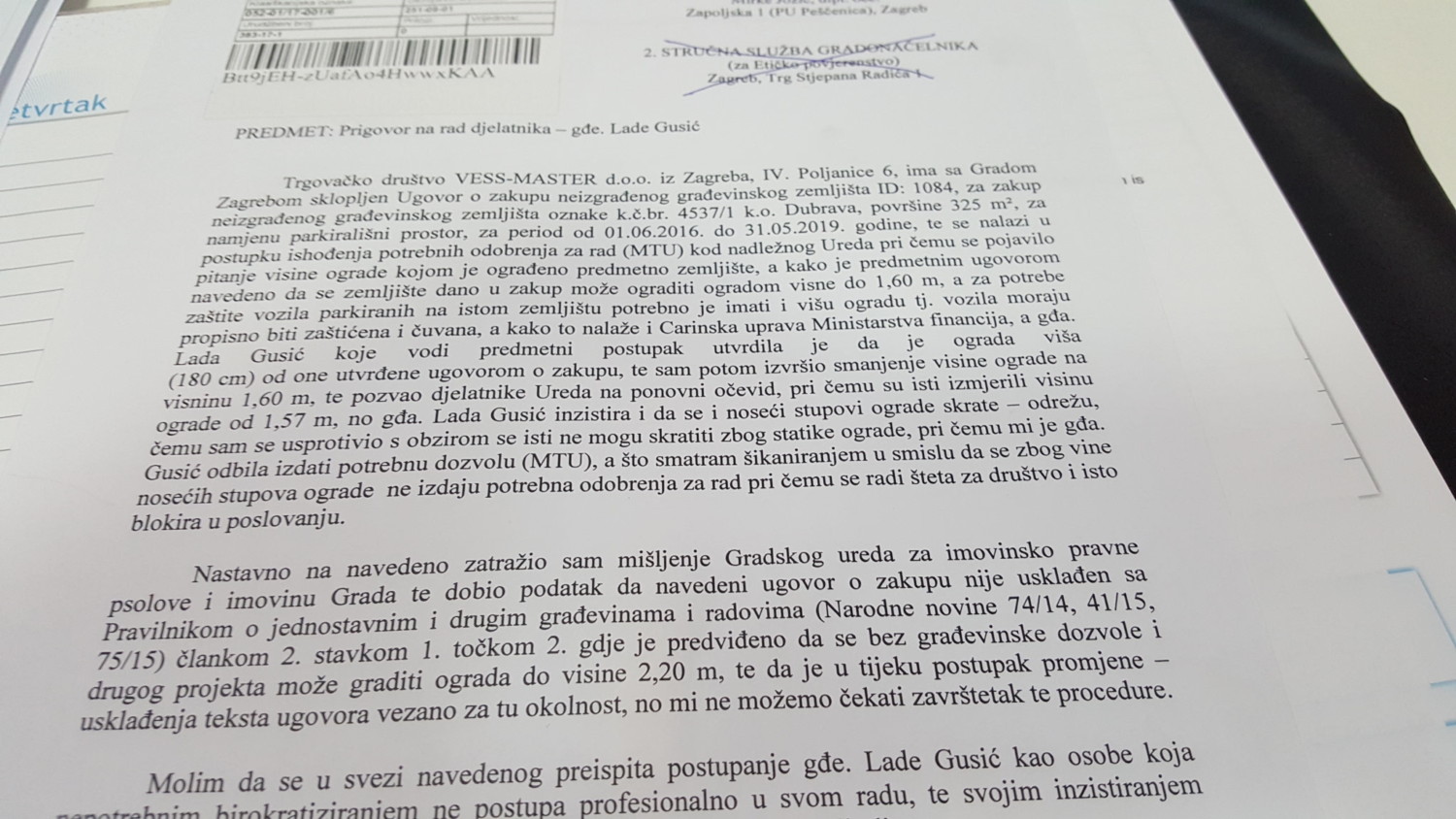Nakon razgovora sa gospodinom Miškićem Službi za informiranje Ureda gradonačelnika u srijedu 19. srpnja uputili smo slijedeći dopis: „Štovana gospodo, Za portal Tjedno pišem članak na osnovu izjava gospodina Darka Miškića koji je gospođu Ladu Gusić iz Gradskog ureda za gospodarstvo i poduzetništvo optužio da mu je tražila novac za izdavanje Rješenja o minimalnim tehničkim uvjetima potrebnim za obavljanje djelatnosti prodaje vozila iz uvoza na iznajmljenoj gradskoj parceli na križanju 4. i 5. Poljanica u Dubravi. Stoga molim službu za informiranje da mi omogući kontakt s gospođom Gusić ili će joj vaša služba proslijediti slijedeća pitanja, pa neka gospođa odgovori.