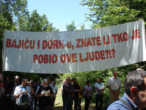 Dosad je popisano 1500 grobišta, od čega 600 u Sloveniji. Hrvatski Kumrovec, primjerice, samo Sutla dijeli od slovenskoga sela Bistrice, gdje grobište krije oko 5000 kostura hrvatskih znanih i neznanih mučenika, hudih jama u Hrvatskoj i Sloveniji. I bistrička jama do neba zove, jer u Kumrovcu svakoga 25. svibnja pogane balkanski titoisti pod znakovljem lažnoga antifašizma, jugokomunizma tuđih i nepostojećih država. I sve pod prešutnom zaštitom vlasti Republike Hrvatske. Ali, 25. svibnja 1945., dugo nakon Bleiburga, Titovi partizanski četnici slomili su veličanstvenu obranu NDH u odžačkoj Posavini, pa zvjerski poubijaše sve ranjene branitelje, starce i dječake. Upravo stoga, na taj krivotvoren rođendan Tita nečastivoga, titosti slave smrt odžačke Posavine i NDH. Još se očitije krši ustav RH, kada se vlasti pridružuju orgijanju u Sebru, Serebu i Srbu svakoga 27. srpnja i novčano, promidžbeno i politički podupiru četništvo, unatoč našim prosvjednim zahtjevima. Premda su se toga nadnevka 1941. rasplamsali četnički pokolji Hrvata diljem Like, Bosne i sve domovine, vlasti RH očito teže povratku na 27. srpnja. Suočeni s ugroženošću domovine, pozivamo vlasti RH i sami se obvezujemo na provedbu brojnih zadaća. Prosvjedni tekst HOZ-a o aktualnoj političkoj situaciji u zemlji, osobito o odnosu spram hrvatskih stradanja i priznanja ratnih i poratnih zločina, pročitala je potom žumberačka djevojka Jelena Mamuzić. Nakon komemoracije u društvenom domu Sošica predstavljena je knjiga HOZ-ovih priređivača o stradanjima hrvatskoga puka tijekom rata i poraća u Đakovštini. Značajan prilog prikazu istine dala je tom prilikom bivša saborska zastupnica gđa Gordana Turić, jedva suspregnuvši teške majčinske suze zbog stradanja sina jedinca. Kršćanski odgojeni i plemeniti hrvatski vitez Zdeslav Turić, pritekavši u pomoć teško ranjenom i umirućem četničkom agresoru, baš od njegova oružja je smrtno stradao. Član sisačkoga Ogranka „Hrvatskoga domobrana“, objasnivši taj čin sebedarja antologijskim, pozvao je nazočne na minutu svečane tišine za Turića i sve hrvatske vojnike s krunicom oko vrata. U dvorani tada i mnogi muškarci više nisu skrivali suze… T