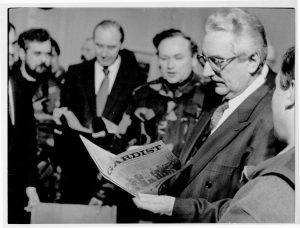 Na slici V. Kostjuka: predsjednik RH Franjo Tuđman sa zadovoljstvom je razgledao i prvi hrvatski vojni list – „Gardist“.