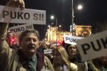 Mnogi demonstranti uzvikuju „Gotov je”, „Uhapsite Vučića” i „Ostavke”.