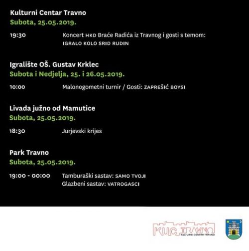 Tijekom petka i subote 24. i 25. svibnja održavaju se tradicionalni, 9. Dani Travnog. Središnja manifestacija započinje danas u 19 sati u Kulturnom centru Travno.