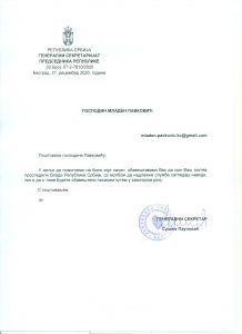 „ Poštovani gospodine Pavkoviću, u želji da pomognemo na bilo koji način, obaveštavamo Vas da smo Vaš zahtev prosledili Vladi Republike Srbije, sa molbom da nadležne službe sagledaju navode, kao i da o tome budete obavešteni pismeni putem u zakonskom roku.“