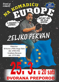 Najbolji stand up komičar na ovim prostorima, Željko Pervan, izvest će svoju stand up predstavu ‘Na komadiću Europe’ u subotu 9. veljače s početkom u 20.00 u Dugom Seluu dvorani KUDa Preporod. Ulaznice se prodaju po 50 kn u knjižari Demova u Dugom Selu.